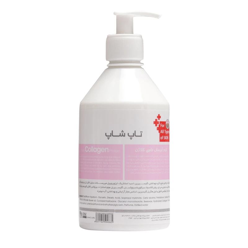 کلاژن فراوان ترین پروتئین در بدن است که در تقویت پوست نقش مهمی دارد و می تواند قابلیت ارتجاعی و آبرسانی به پوست را افزایش دهد و مانع پیری پوست گردد. افزایش سن، میزان تولید کلاژن را کاهش می دهد و منجر به خشکی پوست و چین و چروک می شود. کرم مرطوب کننده کلاژن تاپ شاپ که حاوی عصاره انار نیز است، استحکام و کشش پوست را حفظ کرده، خطوط و چین و چروک ها را کاهش می دهد و به روشن و شفاف پوست کمک می کند.